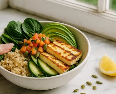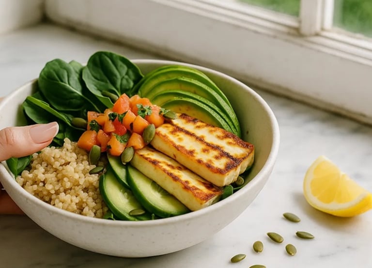 Ovulation Boost: halloumi adds protein and calcium to support cervical fluid quality and energy during your peak phase.