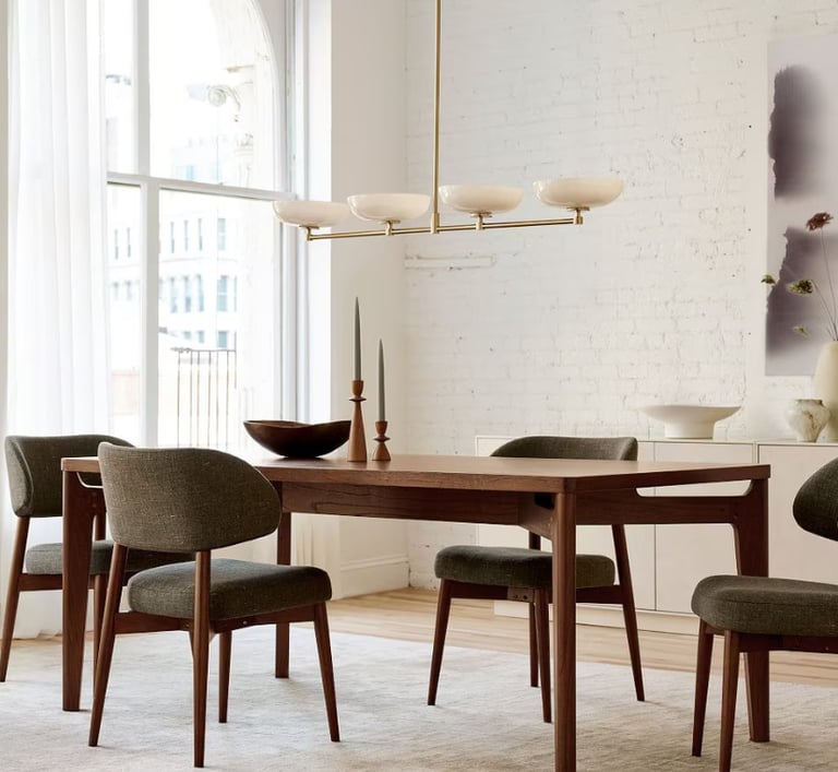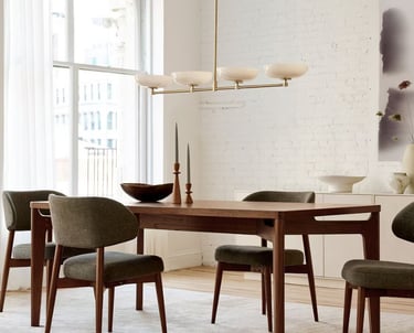 This season’s highlights bring together clean lines and warm materials, with pieces such as the Kasey Dining Table and Cassian Nesting Coffee Tables offering flexibility for busy family homes. Softer accents like the Nell Armchair and Onda Ceramic Bud Vases add character without overpowering a space, while statement lighting, including the Amara Ceramic Linear Chandelier, brings a sense of occasion to everyday living.