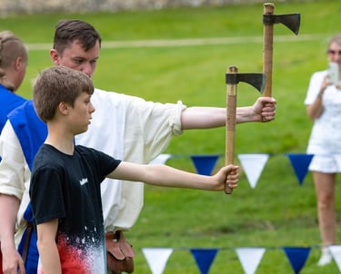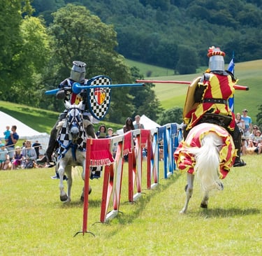 Jousting remains one of the most dramatic displays of medieval skill and endurance, and visitors can expect a lively recreation of the traditional tournament. Armoured riders will charge across the arena on horseback, lances raised, competing in contests that demand precision, balance and remarkable horsemanship. The performances are carefully choreographed yet retain the excitement and unpredictability that made jousting such a celebrated sport during the Middle Ages.