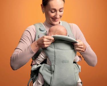 Kudo has been designed with real-life parenting scenarios in mind. A large over-the-head opening makes it easy to put on and take off while holding a baby, and quick-clip magnetic connectors adjust to different body shapes. Pull-forward adjustments allow parents to fine-tune the fit without twisting or reaching behind, making it more practical for everyday use.