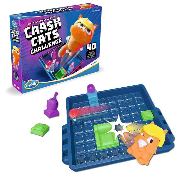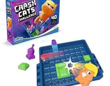 Crash Cats is a sliding block puzzle game that combines logic with fun. Players set up the board with various cats and then slide them across the grid, aiming to crash the yellow-helmeted cats while ensuring the red-helmeted cat remains. With challenges ranging from beginner to expert, the game helps develop spatial reasoning and problem-solving skills. The spring-loaded mechanism adds an element of surprise and excitement, making it a delightful addition to any game collection.