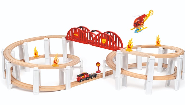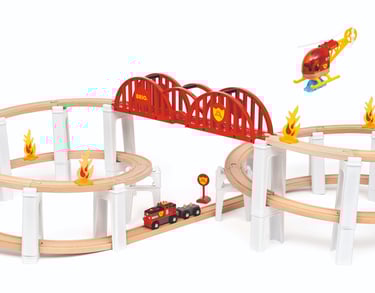 Elevate your BRIO World with the Mega Spiral Set. This advanced train set includes 63 modular track and support pieces, designed for experienced builders to create taller, more complex layouts. Children can construct impressive spiral-shaped tracks, intricate figure-8 loops, or towering multi-level designs. Whether used as a standalone set or integrated into an existing BRIO World setup, the Mega Spiral Set offers unmatched height, speed, and fun, providing endless possibilities for imaginative play.