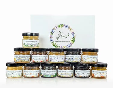This thoughtfully curated mini honey collection makes a unique and memorable Christmas gift that goes beyond the ordinary. Featuring twelve jars of certified organic, raw honey, each with its own distinct flavour and origin, it invites the recipient to discover and enjoy the diverse tastes of nature. Its compact size is perfect for sampling or sharing, while the elegant presentation reflects the care and consideration behind your choice. In a season of indulgence, this set offers the perfect blend of luxury and wellness, making it an ideal gift for food enthusiasts, health-conscious friends, or anyone you would like to surprise with something truly special.
