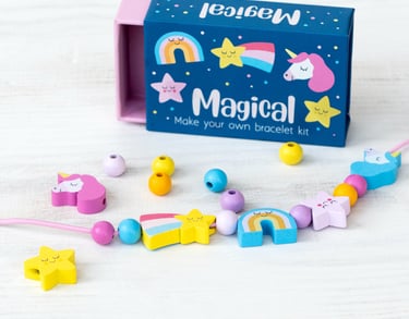 The Wooden Bead Bracelet Kit – Magical inspires creativity and patience. Children aged five and above can design and assemble their own colourful jewellery, experimenting with patterns, shapes, and personal expression. This activity promotes fine motor skills, concentration, and imagination, while also offering the satisfaction of a finished product that can be worn or gifted. It’s a calm, hands-on activity that encourages mindfulness and creativity during the busy Christmas season.