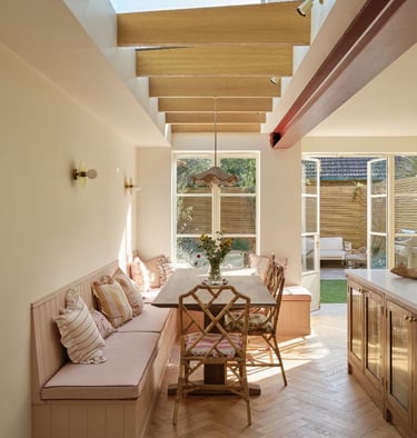 Alongside colour, design details are evolving to support a more relaxed, lived in style of cooking and dining. Banquette seating, for example, has become a popular addition in family kitchens. Its compact form creates a cosy, communal atmosphere that encourages informal dining and conversation. Because it can be made to measure, banquette seating also offers a practical solution for awkward corners, turning underused areas into inviting dining nooks while maximising floor space.